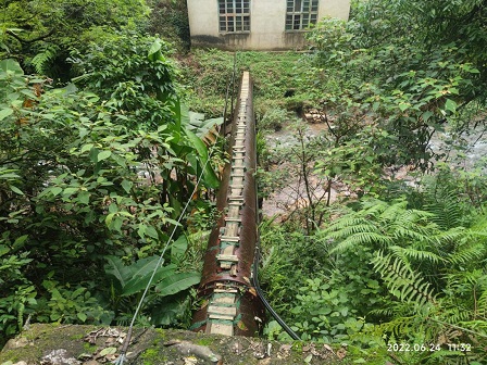 我公司于2022年6月24日到靈川縣九屋鎮(zhèn)石洞村對石洞水電站設(shè)施拆除評估進行現(xiàn)場勘查工作,一同前往人員有靈川縣水利局、石洞村村委等代表,通過現(xiàn)場勘查和周邊走訪,我公司對石洞水電站相關(guān)設(shè)施情況有了具體的了解。石洞水電站位于廣西桂林靈川縣九屋鎮(zhèn)石洞村石洞小學(xué)旁,水電站由發(fā)電廠房、攔水壩、引水渠道、壓力前池、壓力管道等設(shè)施組成,相關(guān)人員到現(xiàn)場對水電站各個組成設(shè)施及周邊生態(tài)環(huán)境進行了拍照、視頻拍攝,對攔水壩、引水渠道、壓力前池等設(shè)施進行測量記錄,這些影像資料和數(shù)據(jù)對水電站設(shè)施拆除評估提供了依據(jù)。